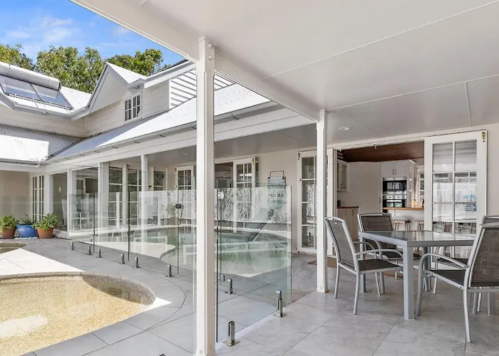 プールを提供するベッドルーム2室のサンシャインビーチ Dwyer St Hamptons Havenヴィラは、サンシャインビーチの住宅街に位置し、ヌーサ マリーナから7kmくらいです。 ヘイスティングス・ストリートから徒歩で25分位置し、別荘はWiFiと無料の専用駐車場を提供しています。